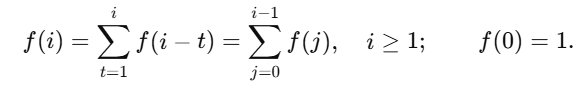 # O(n^2) 动态规划:dp[i] = sum_{t=1..i} dp[i - t],dp[0]=1